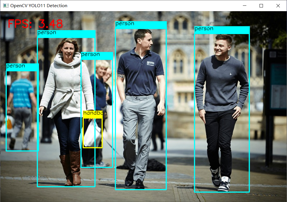 YOLO11对象检测模型 OpenCV DNN部署推理演示如下: