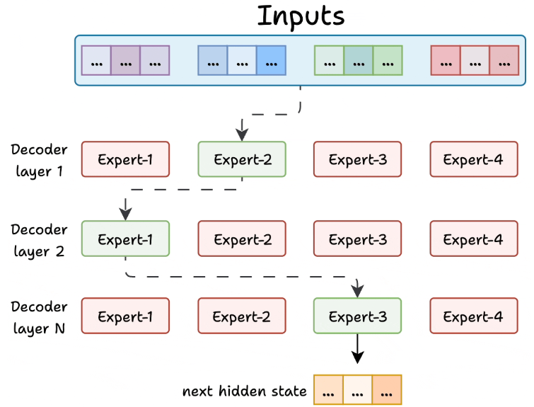 每个专家都是一个轻量级前馈神经网络,每次只根据输入选择少数专家。该选择由路由器处理,在推理过程中动态选择每个标记最相关的专家。
