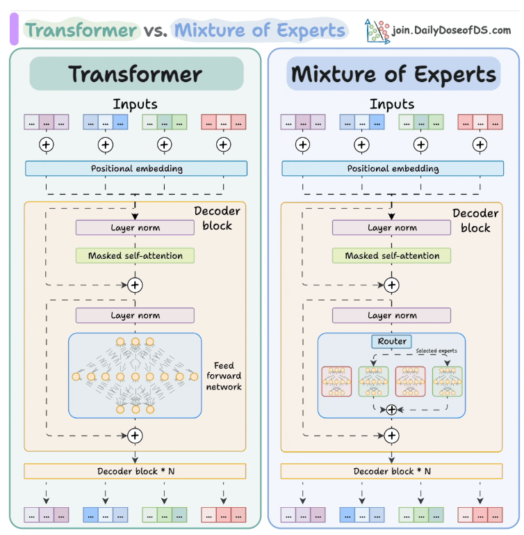 专家混合(MoE)是一种基于Transformers构建的高级架构。其主要理念是通过激活少数称为专家的专业网络,使模型更高效。