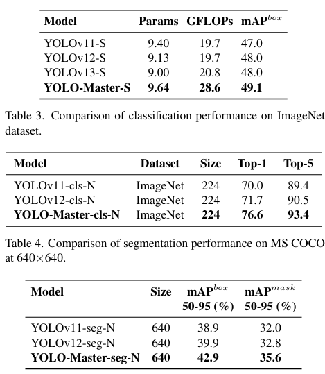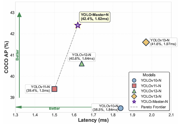 YOLO-Master是由腾讯优图实验室的研究者与新加坡管理大学合作,于2025年12月提出的一种新型人工智能系统。其核心创新是一个名为“高效稀疏专家混合模块”的技术,该系统内置不同专长的AI专家,能根据输入图像智能调度专家组合。在MS COCO数据集的目标检测任务中,YOLO-Master-N取得了42.4%的平均精度,处理单张图像仅需1.62毫秒。该系统架构还可扩展至图像分类与实例分割任务,在ImageNet数据集上达到了76.6%的Top-1准确率。其技术特点使其适合部署在自动驾驶汽车、监控摄像头等资源受限的边缘设备上