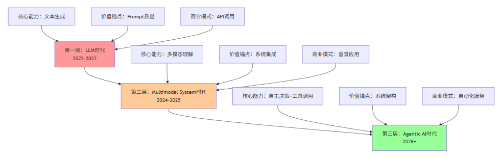 理解Prompt贬值的深层原因,必须先理解AI系统的三层进化路径。