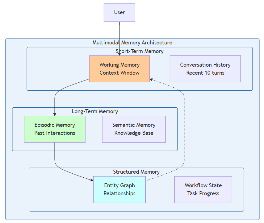 Memory | In-Memory | Redis + Vector DB | 分布式Memory集群 |