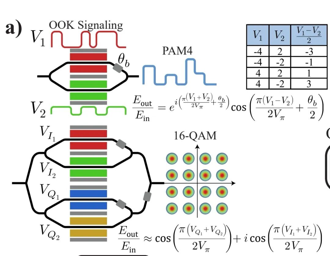 1. 双臂独立驱动架构:MZM的两个干涉臂由不同的差分逻辑电平信号独立驱动,通过双臂驱动将二进制通道合成为多电平输出,天然兼容CMOS逻辑门的直接驱动电压,无需额外射频驱动芯片。