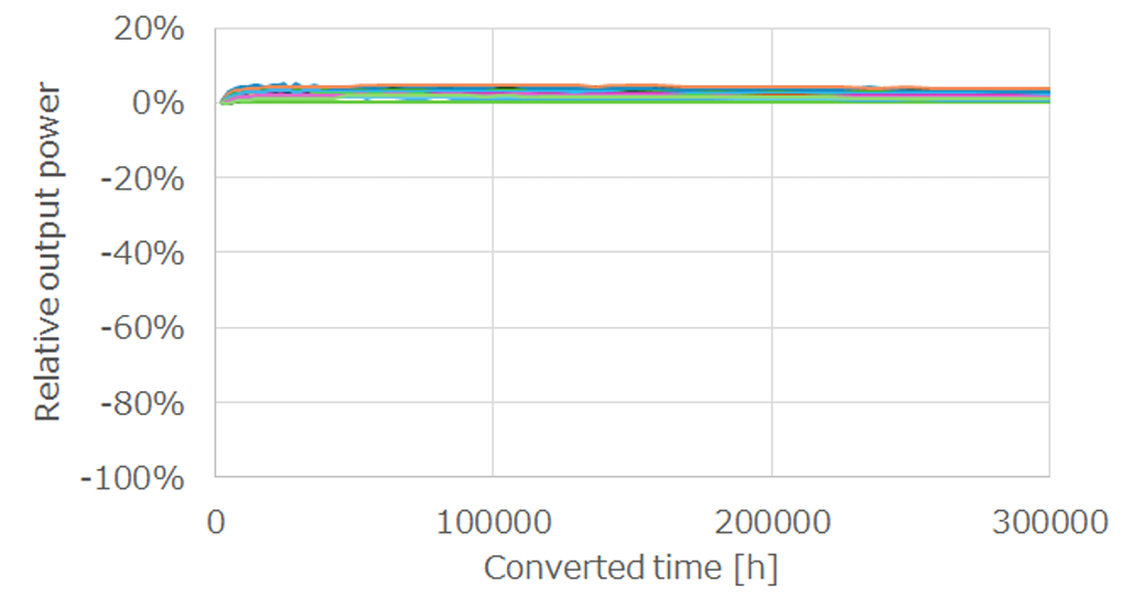 可靠性是器件商用的核心前提,该 VCSEL 采用 TO-CAN 封装,在 100℃高温、9.5mA 恒定偏置下进行加速老化测试,基于标准可靠性模型估算:70℃/8mA 实际工作条件下,寿命超 10 年。目前更全面的可靠性测试仍在进行,已有的结果充分证明了其长期工作的稳定性,为商用落地提供了关键保障。