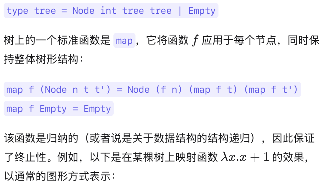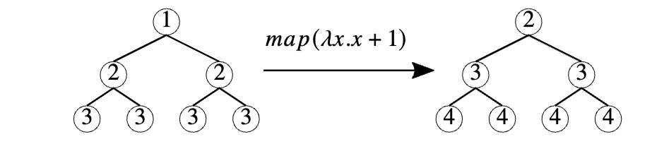 让我们从一个常见的情况开始,即非树状数据结构在算法上是合理的,并审视相关的问题和提出的方法。在函数式语言中,树状数据结构无处不在,因为它们可以表示为代数数据类型。例如,考虑节点中存储(整数)数据的二叉树类型: