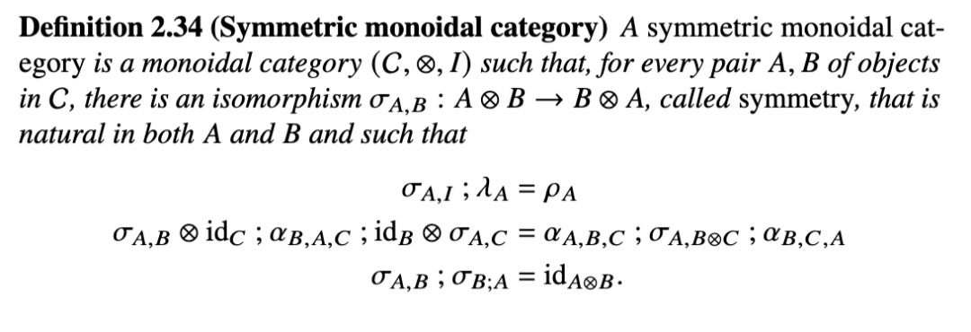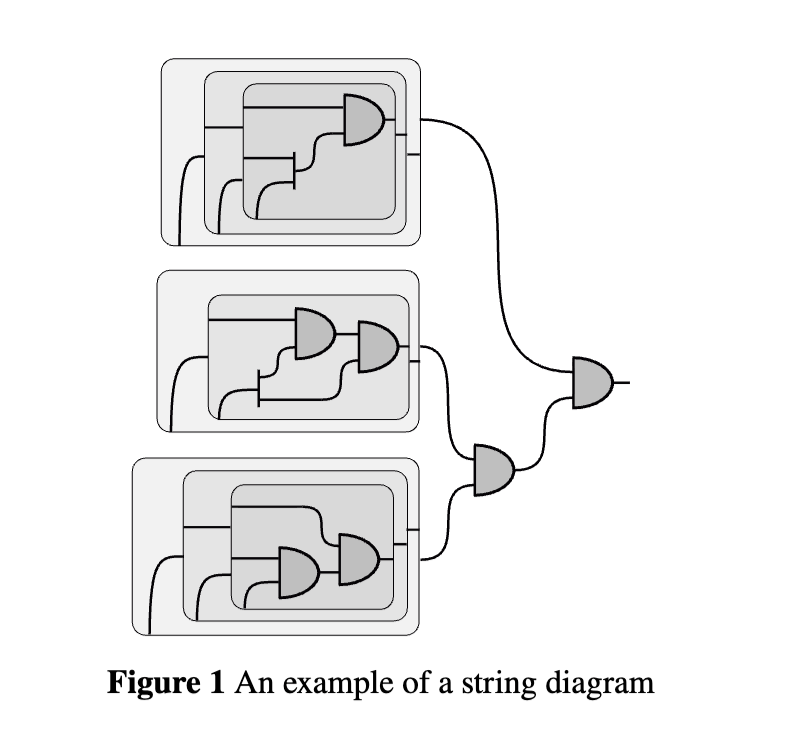 我们假设读者熟悉范畴论和弦图的基本概念,因此在本第一节中我们将快速浏览材料,仅强调那些特定于本次表述的方面。对于需要更入门级的范畴论表述的读者,有许多教程可供起步,其中许多面向计算机科学家(Pierce, 1991)。特别相关且有用的是关于弦图的教程介绍,参见非常近期的(Piedeleu & Zanasi, 2023)和经典的(Selinger, 2011)。