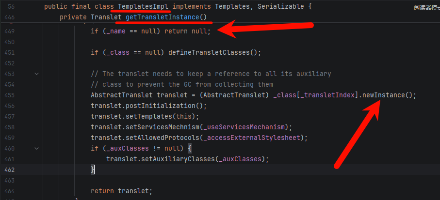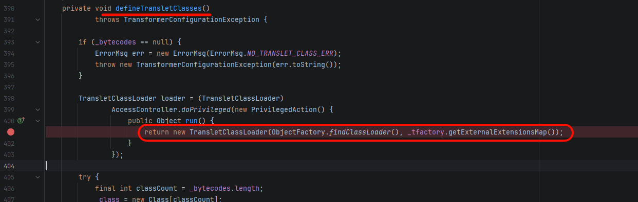 }后面两个抽象方法必须加上,不然代码报错。extends AbstractTranslet 的原因下面分析。