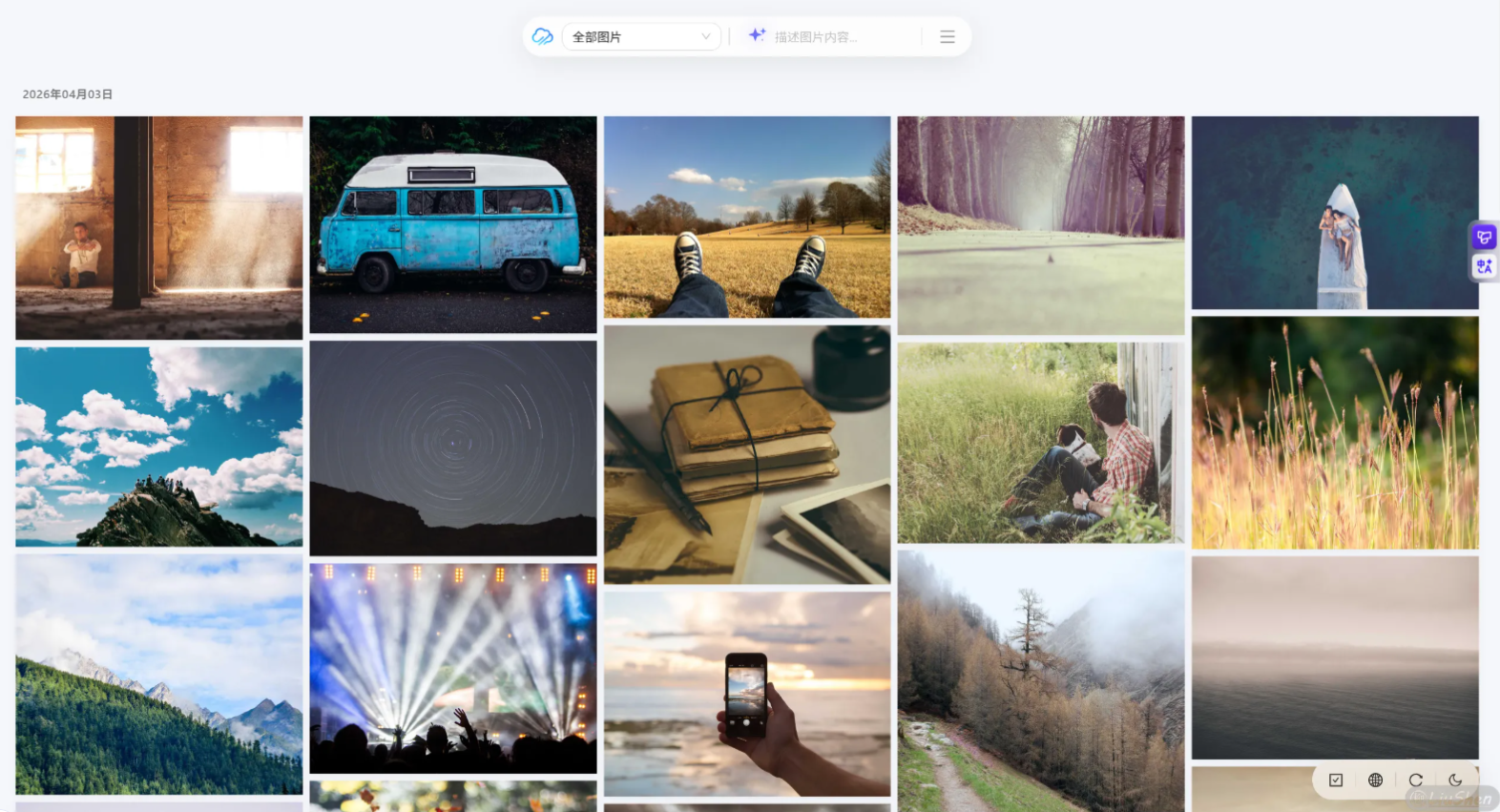 从一个相册的角度来看,这个程序已经具有基本上所有的功能,但是不知道为什么,我看issue中的演示站,总感觉卡卡的,并且按照我个人的审美而言,我更喜欢瀑布流展示,PicImpact虽然也有瀑布流,但是只能在时光相册页面看到,整体页面很清爽,但是个人不太喜欢(纯主观),如下: