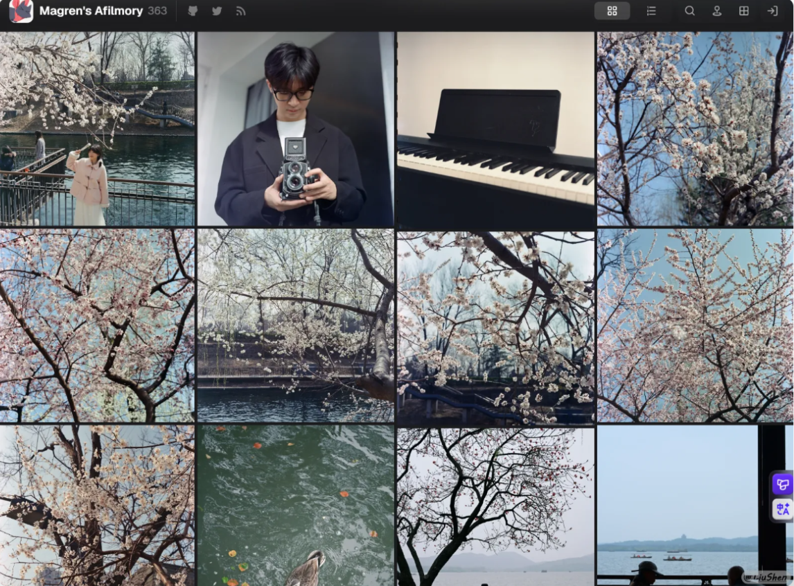 下面就是Afilmory了,其实刚发现他的时候,我并不知道他只能通过获取列表展示,我还以为是后台上传显示,但是由于那时候还是学生的我没法负担起较高价格的存储,虽然说免费的少量存储很多,但是对于我来说,更在乎服务的持续性,我不想使用那种一眼看到头的服务,所以就一直搁置。