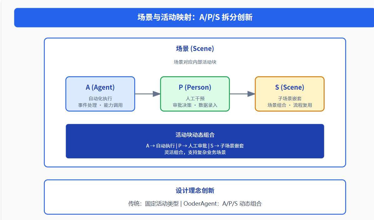 活动类型固定 | A/P/S 动态组合 | 灵活性 |