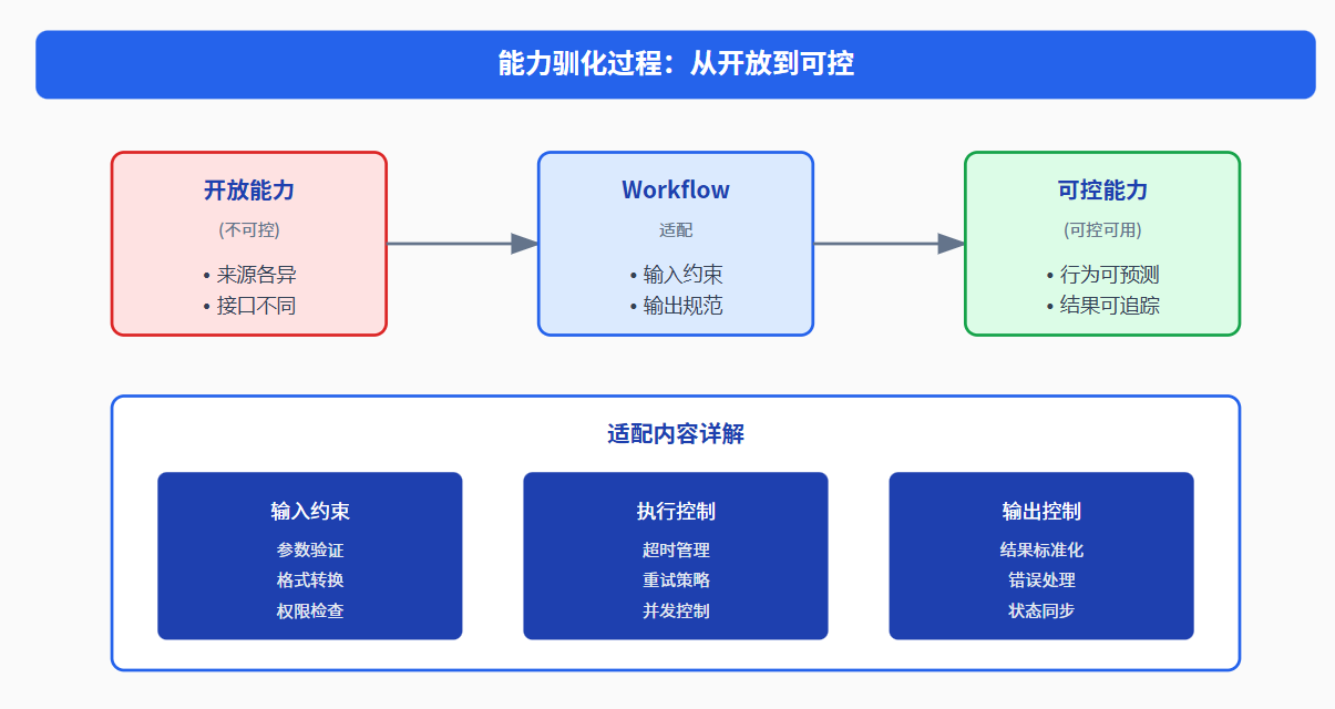 Workflow 通过适配实现能力的"驯化":