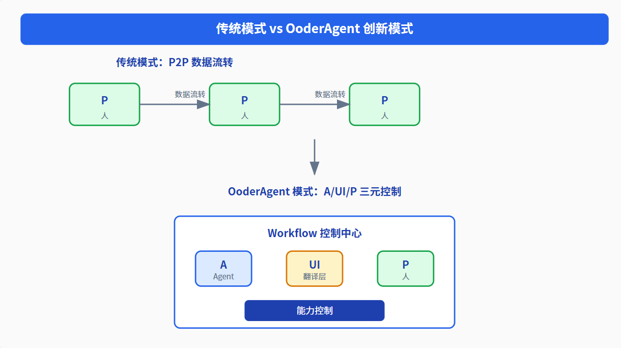 传统模式 | OoderAgent 模式 | 创新点 |