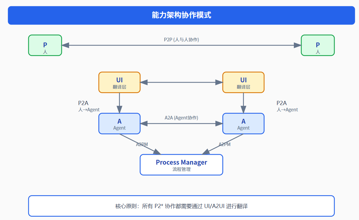 所有涉及 P(Person)的协作都需要通过 UI 进行翻译。