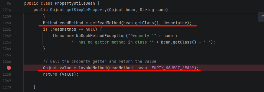 invokeMethod(readMethod, bean, EMPTY_OBJECT_ARRAY) 就是反射调 getter,通过反射调用了 getOutputProperties()。