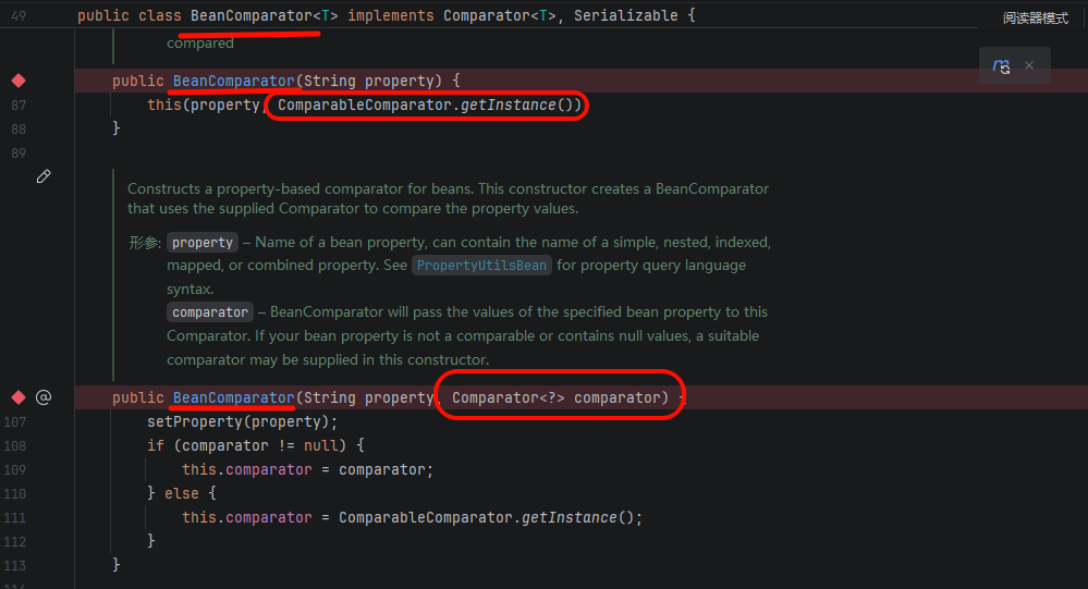 BeanComparator 有两个构造方法: