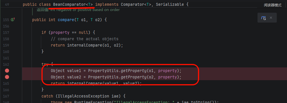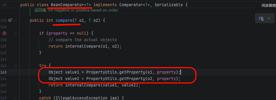 核心在 BeanComparator 类的 compare 方法: