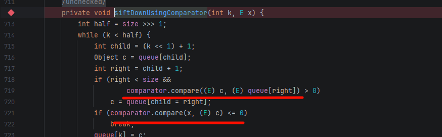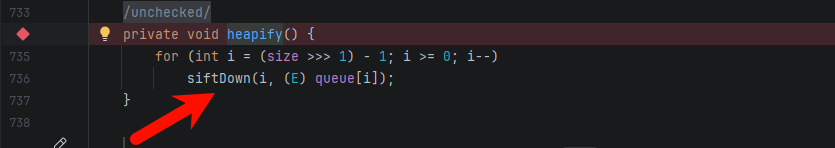 → heapify() → siftDown() → siftDownUsingComparator()