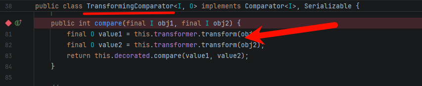 TransformingComparator 是通过触发 transform 来触发反射达到目的: