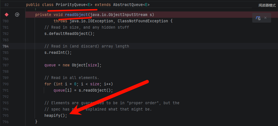 PriorityQueue.readObject()