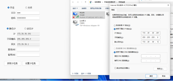 问题3. Wifi测试:用手机开热点(或者电脑)电脑和采集网关同时连热点,连接后用电脑ping采集网关wifi IP172.20.30.191