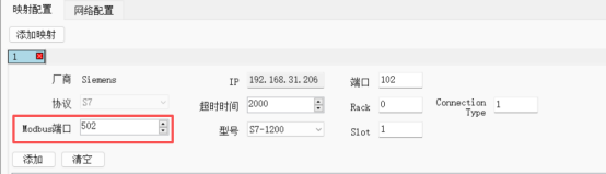 问题1. Wan口192.168.1.10和modbusTCPclient同网段,通过不同的端口连接不同的plc,每个映射设备不能填相同端口。