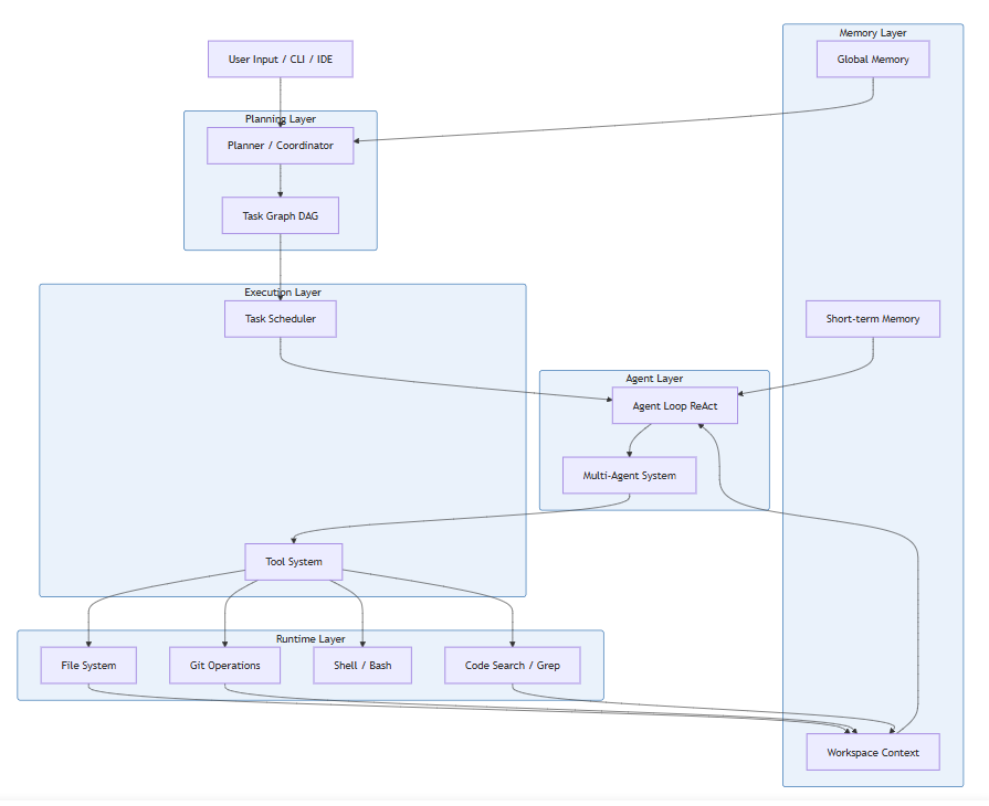 LLM → Tool → Observation → LLMGoal → Task Graph → ExecutionEverything is a ToolAgent Team ≈ 软件工程团队Memory ≈ 自动上下文管理系统结合你的技术背景(Agent / RAG / 后端系统),可以按这个路线实现: