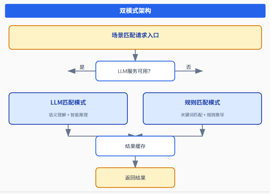 4. 返回匹配度排序和推荐配置为确保系统稳定性,设计了"LLM优先、规则兜底"的双模式架构: