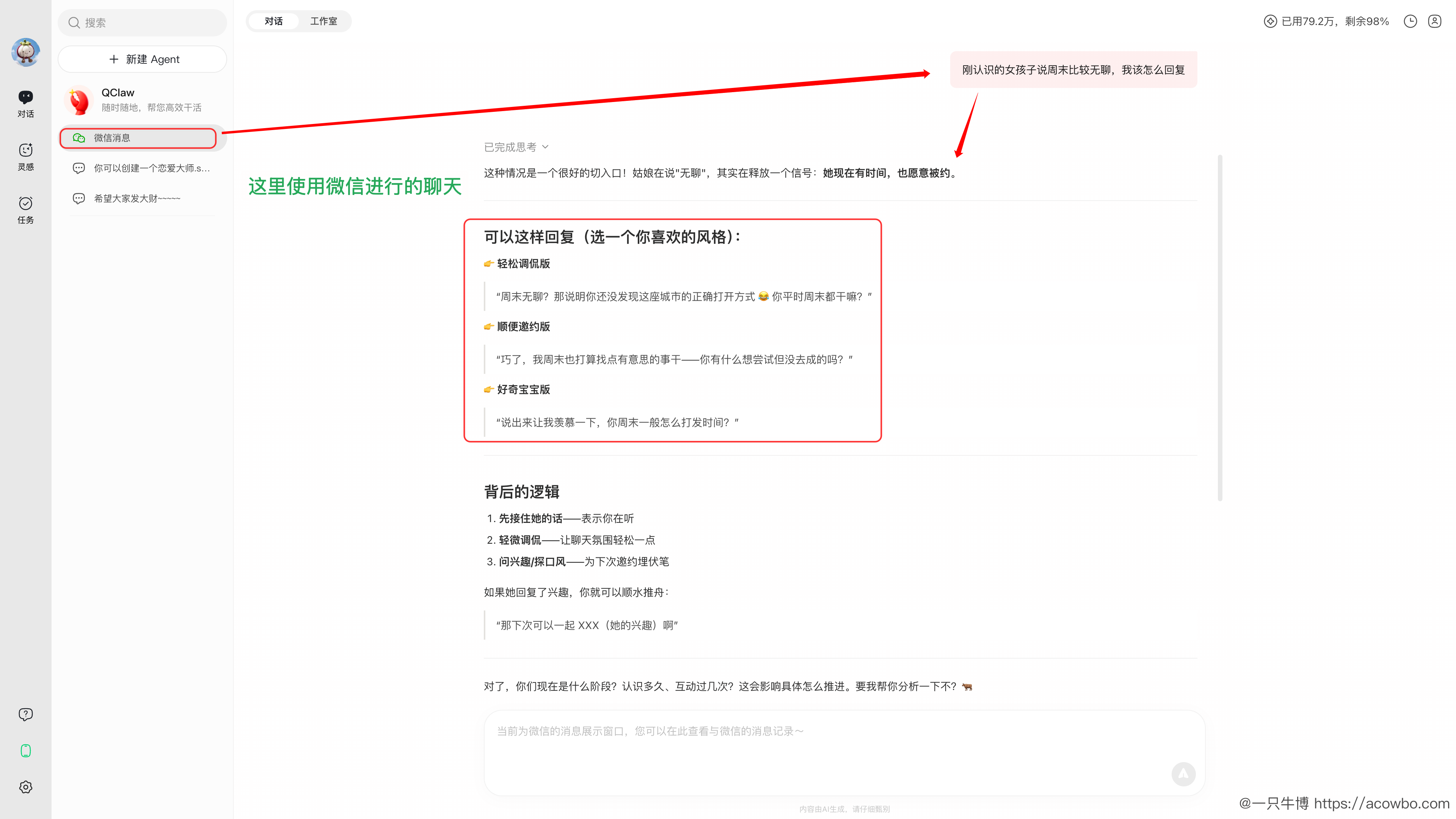 QClaw 连上微信之后,这个“恋爱大师”Skill 才真正变成了一个我会在日常里拿出来用的东西。