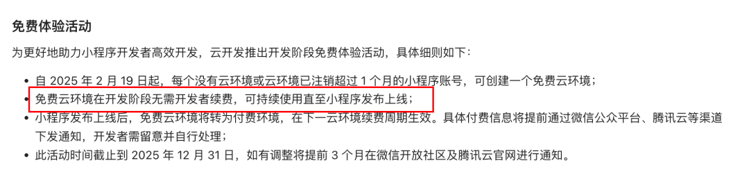 小程序在正式上线前有一个体验版,可以使用免费额度,最多支持15人使用。也就是说,如果这个小程序只是自己及少量朋友使用的话,完全可以白嫖这个微信云服务。 大家如果想体验我这个备忘录的话,也欢迎私信我!