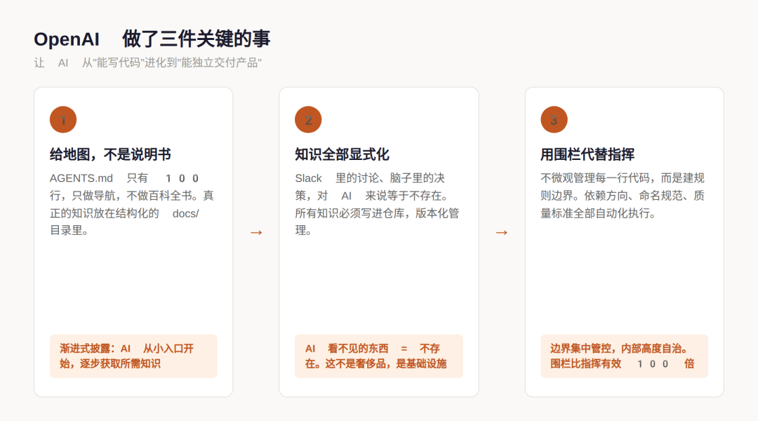 OpenAI 的解法不是微观管理每一行代码,而是建围栏: