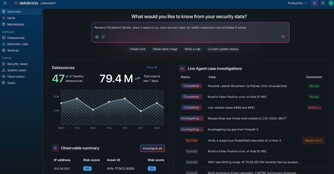 用途场景:Databricks 于 3 月 24 日发布Lakewatch,一种开放式、代理化 SIEM(安全信息与事件管理)解决方案。该系统将安全、IT 与业务数据统一到单一治理环境,为机器学习驱动的威胁检测和响应提供基础 。