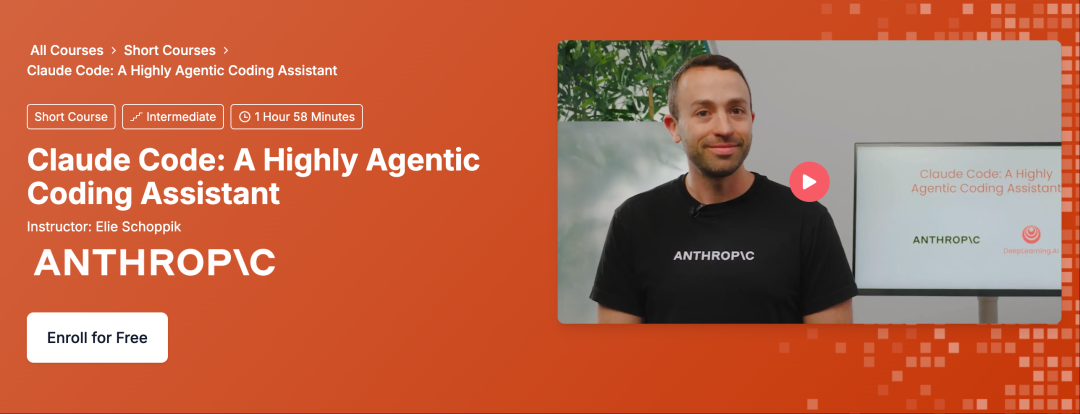 Anthropic 官方亲自下场,其技术教育主管 Elie Schoppik 联手吴恩达的 DeepLearningAI,推出了一门重磅新课:《Claude Code: A Highly Agentic Coding Assistant》。