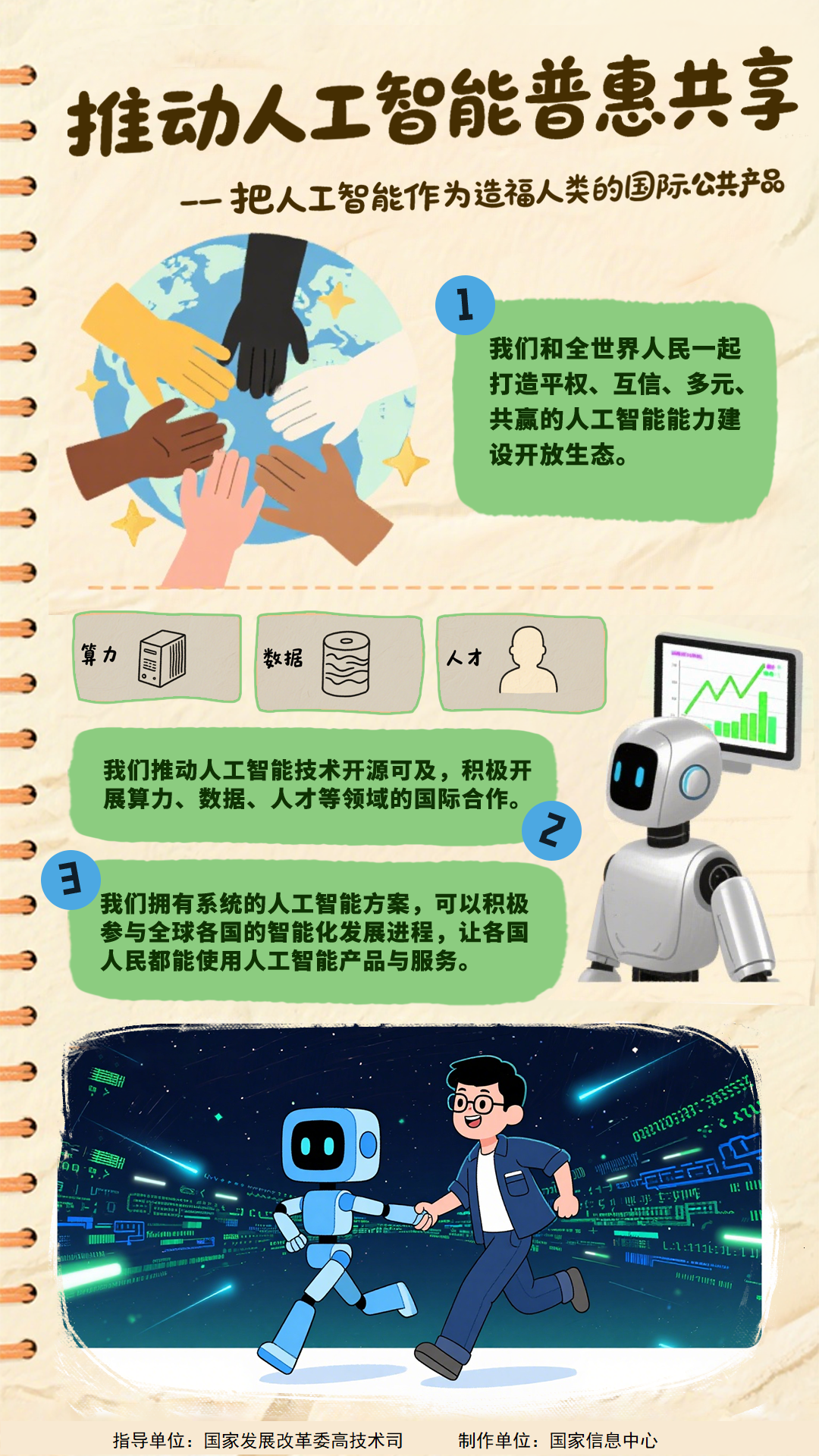 持续推进“人工智能+”行动,将数字技术与制造优势、市场优势更好结合起来,支持大模型广泛应用,大力发展智能网联新能源汽车、人工智能手机和电脑、智能机器人等新一代智能终端以及智能制造装备。