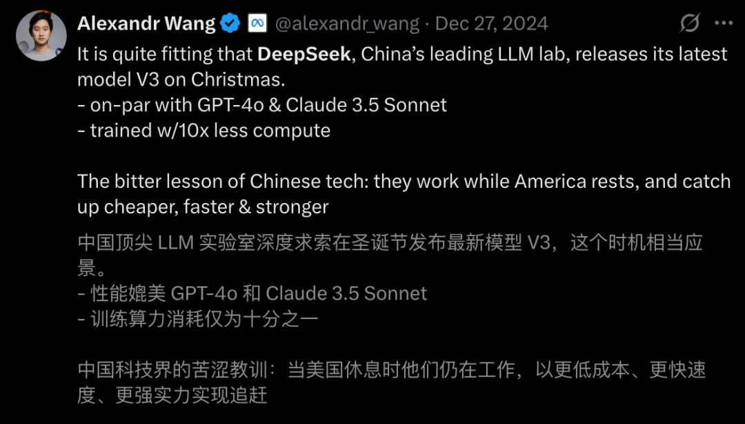 这一点大家可以翻一翻 DeepSeek V3/R1 出来以后,美国科技圈对 DeepSeek 的评价,DeepSeek 堪称科技圈的意识形态照妖镜。
