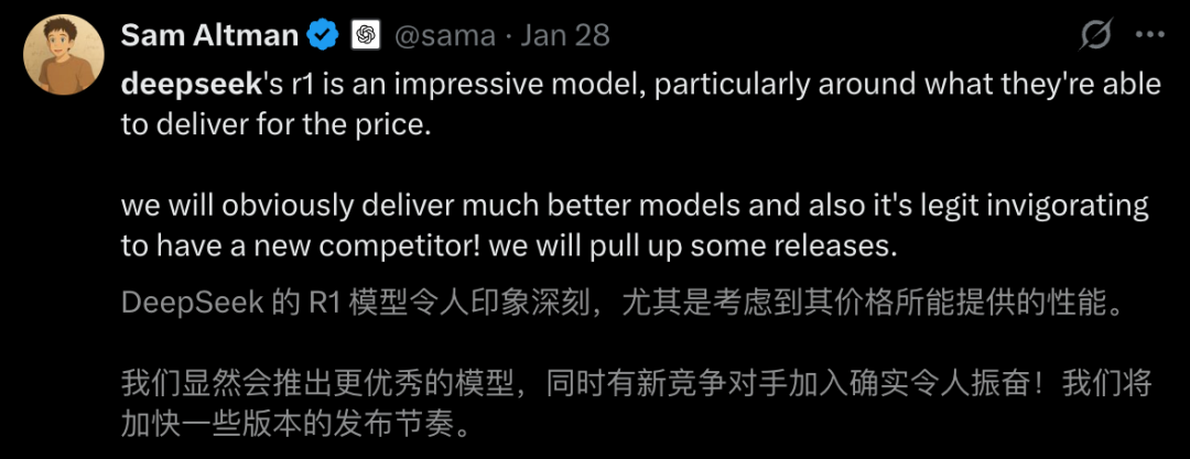就算真的是中美竞争,那也是美国政府的事,前面还有 OpenAI 和 Google 呢,轮得到老三表态吗?