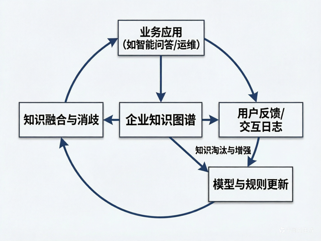 中国工程院院士李德毅曾指出,“智能的本质是具身交互和记忆的交互”。自演化知识网络正是这一理念的落地实践。它不是一个静态的数据库,而是一个与业务环境、用户行为持续“交互”并更新自身“记忆”的认知系统。这印证了从“知识管理”到“知识驱动”的范式转移。