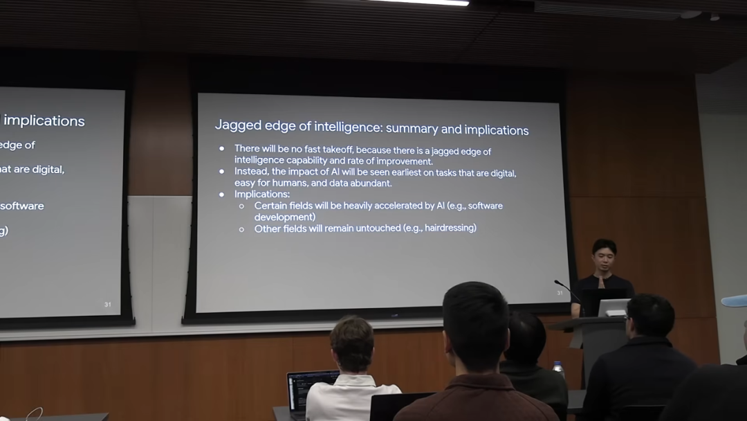 Jason 的第三个观点,是关于 AI 能力发展的形态。很多人对 AI 的未来有一种二元对立的看法,要么觉得它无所不能,要么觉得它漏洞百出。