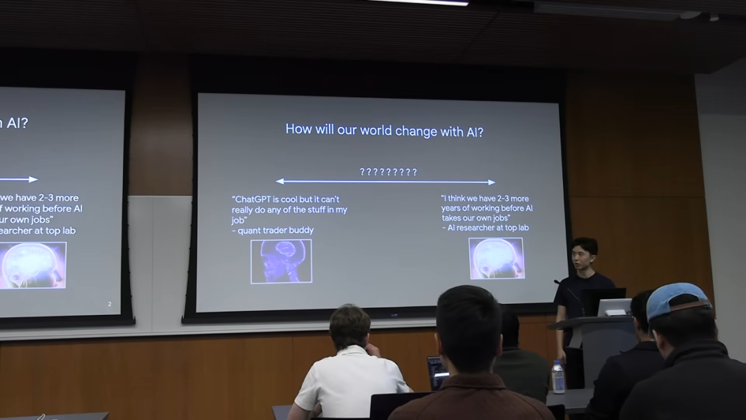 我们常常讨论 AI 会如何改变世界,但不同的人给出的答案天差地别。Jason 的一位量化交易员朋友认为,ChatGPT 虽然很酷,但在他的实际工作中几乎派不上用场。而另一位顶级 AI 实验室的研究员则悲观地表示,他们可能只剩下两三年的工作时间,之后就会被 AI 取代。
