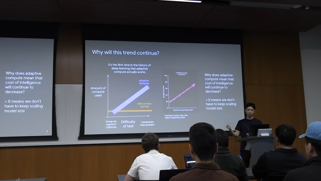 这个趋势会持续下去吗?Jason 的答案是肯定的,而背后的核心驱动力,是一种在深度学习历史上第一次真正奏效的技术:自适应计算 (Adaptive Compute)。