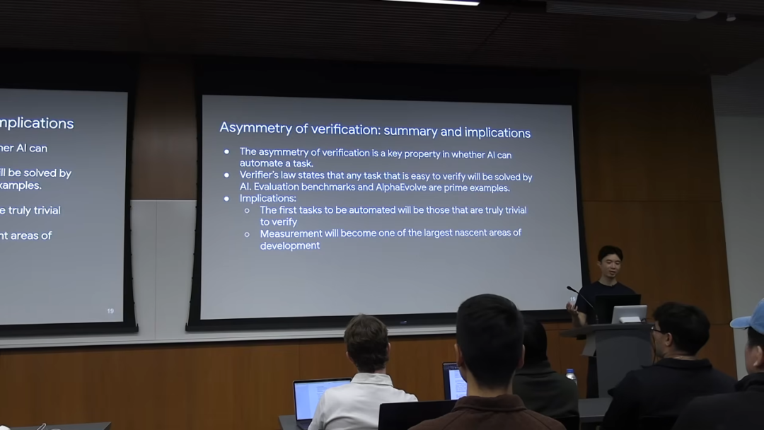 Jason 提出的第二个核心思想,是一个他称之为「验证者法则」(Verifier’s Law) 的规律。这个法则可以帮助我们预测哪些任务会最先被 AI 攻克。