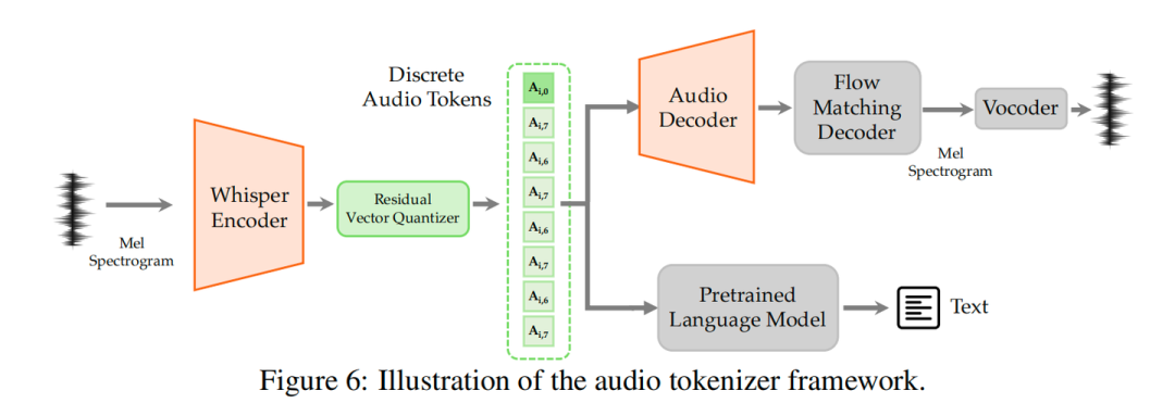有了高质量的连续特征,接下来的离散化步骤就和视觉处理几乎一致,同样采用了8 层 RVQ机制。对于声音而言,高保真度至关重要。单层的 VQ 可能会导致声音重建后出现明显的“金属感”,而 RVQ 通过逐层逼近残差的方式,能够以极高的精度保留原始声波的细节,确保了最终合成语音的自然度和音色的准确性。