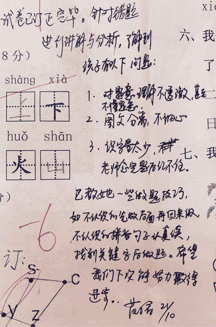 找了一张有老师批语的试卷进行要求识别其中的手写体: