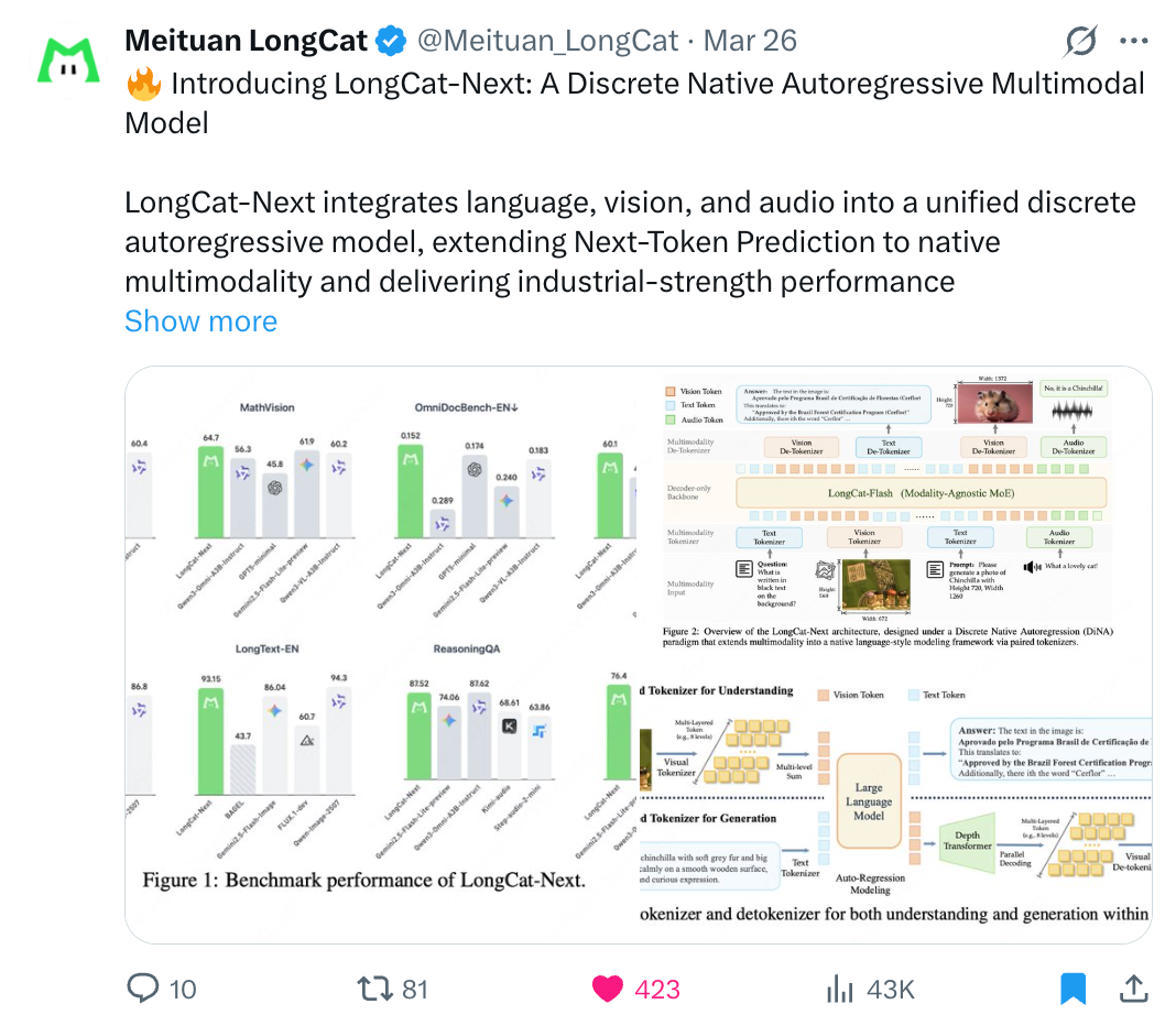 美团龙猫团队开源上新,这次是原生全模态模型 LongCat-Next。