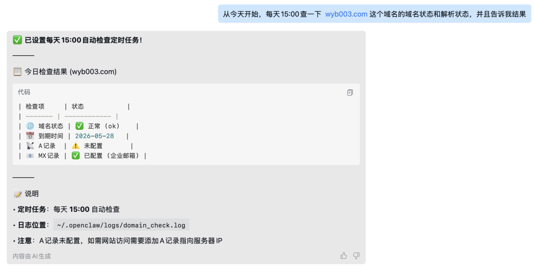 今天就教大家10分钟用OpenClaw手搓一个“域名监控小助理”,每天替我们盯着域名和解析状态,异常情况第一时间通知!