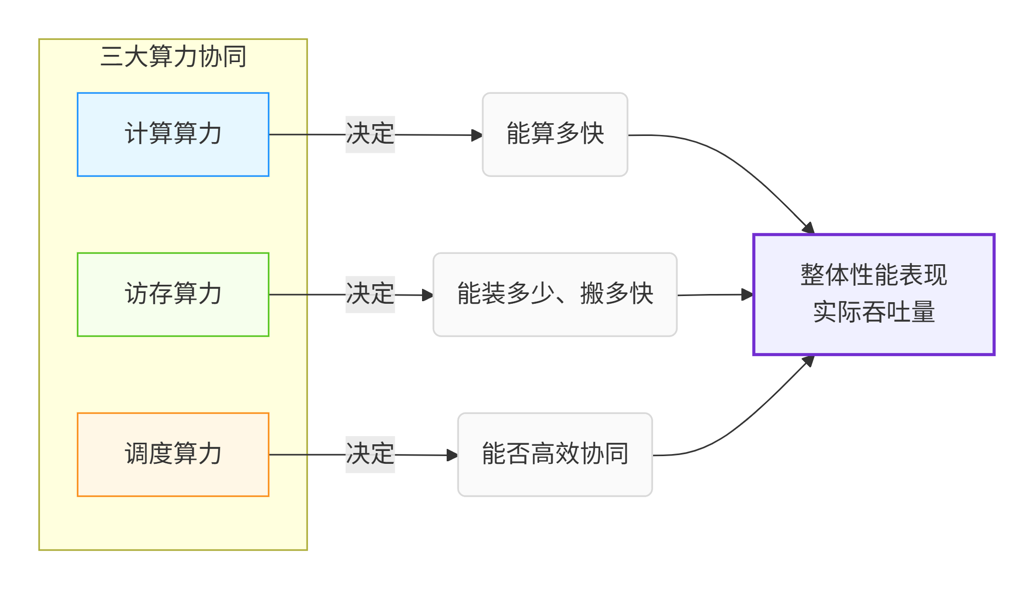 计算、存储、控制的协同工作。在大模型推理中,三者必须平衡发展,任何单方面的优势都无法转化为实际性能提升。
