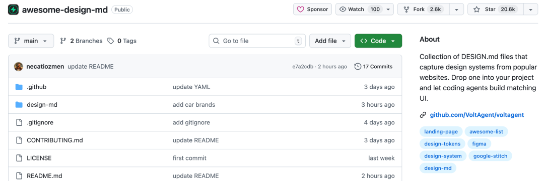 GitHub:https://github.com/VoltAgent/awesome-design-md