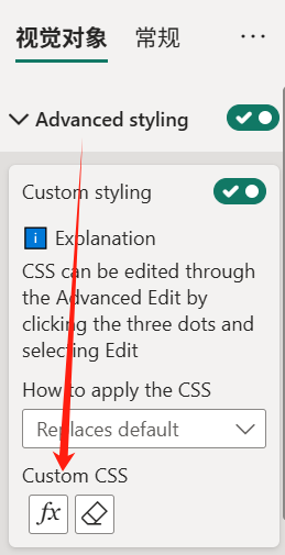 内置表格无法实现这样的交互,这里使用了Paginated HTML table视觉对象。视觉对象打开高级样式: