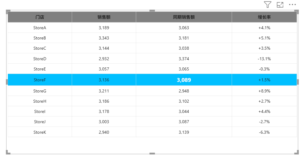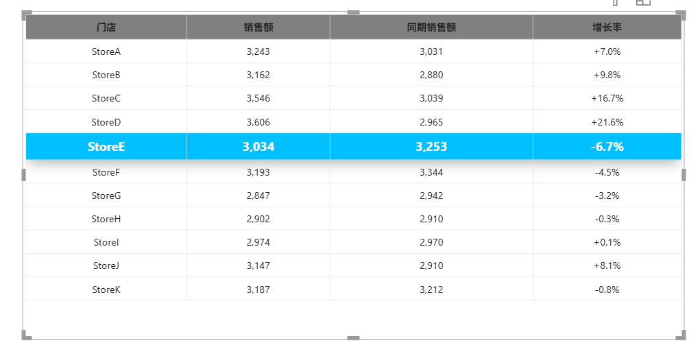 鼠标悬停在表格时,可以通过改变当前行的背景色、字体颜色、字号等方式突出显示该行:
