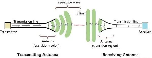 - 接收状态:将空间中的电磁波捕获并转换为传输线上的信号,送入接收电路。