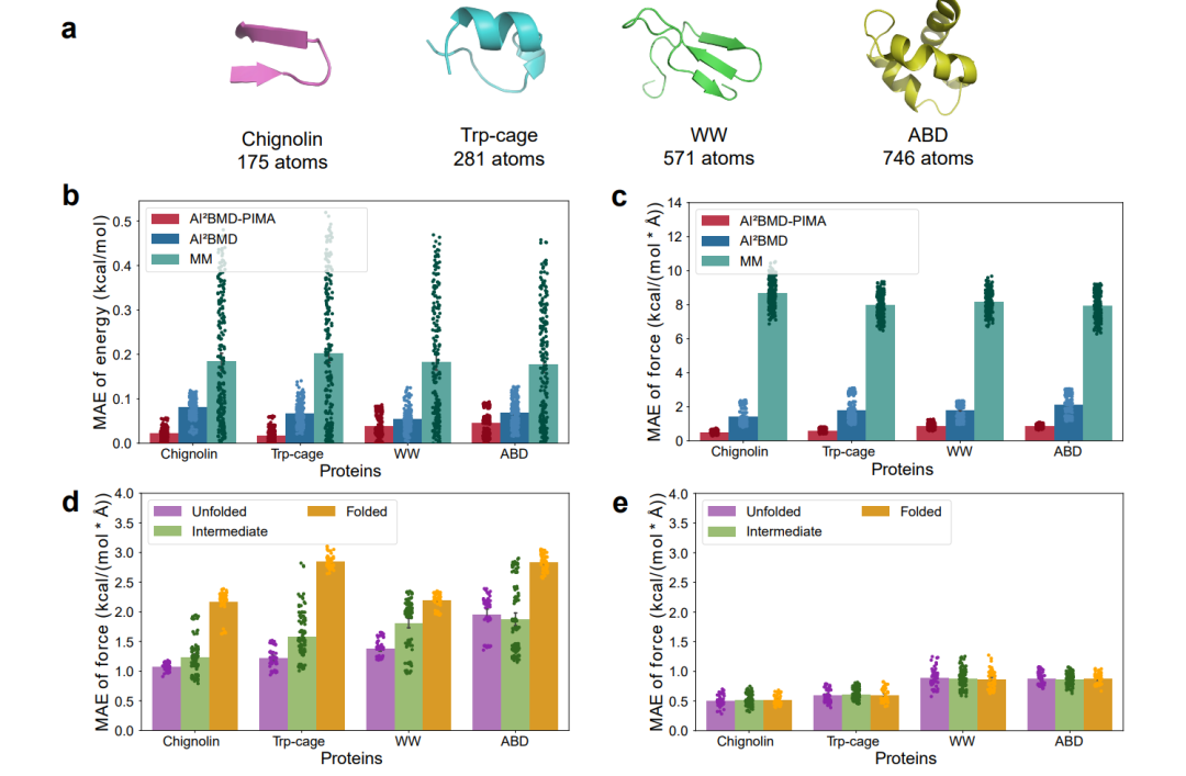 图4. AI2BMD-PIMA在不同蛋白质上的能量和力计算评估。